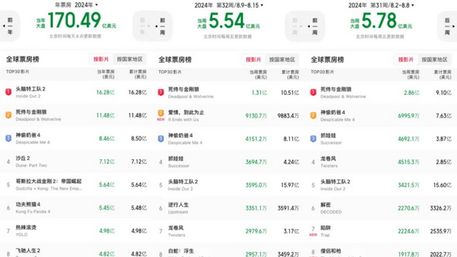 截至18日,北美月度总收益累计至6.54亿美元,即将反超去年全月录得的数字(8.13亿美元),有望成为今年第二个同比上涨的月份。而在8月第一个周三,北美年度总票房终于突破50亿美元关口,而去年在7月中旬便已撞线;鉴于下半年的新片矩阵颇为强盛,北美院线产出仍保留冲击80亿美元的机会。
