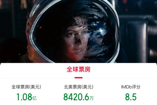 《异形》剧照 票房(图源:豆瓣 猫眼专业版)