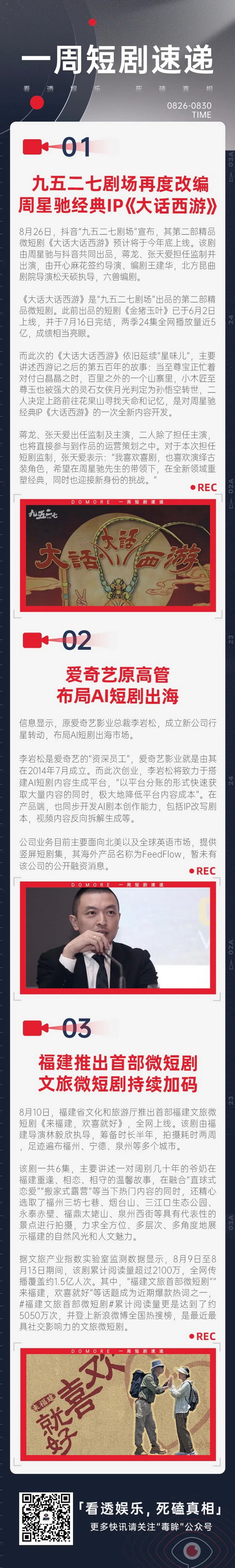 此外,前爱奇艺高管李岩松也开始创业,布局AI短剧出海赛道。福建推出首部文旅微短剧《来福建,欢喜就好》,全网浏览量破千万,表现相当亮眼。