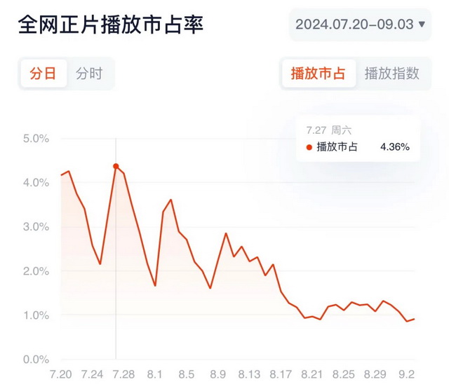 根据灯塔专业版数据显示,《十天》全网正片播放市占率历史最高仅为4.36%,但在微博上,每逢播出日,相关热搜频频登上热搜榜前列。