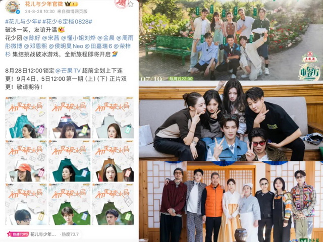 (图源:微博@花儿与少年官微@湖南卫视中餐厅@腾讯视频五十公里桃花坞)