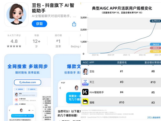 在今年5月的2024春季火山引擎Force原动力大会上,字节跳动产品和战略副总裁朱骏表示,豆包App总下载量已达1亿次。并且将开启付费商业化,价格相比同行便宜99.3%,定价0.0008元/千Tokens。