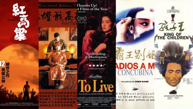 《红高粱》《大红灯笼高高挂》《活着》《霸王别姬》《孩子王》(图源:豆瓣)