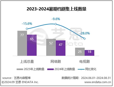 而根据云合数据的报告,2024年全网剧集有效播放为643亿,同比下滑17%;艺恩数据并未涉及整体大盘的播放量数据,只提及了上新量确实有所下降,并且台播和网播的边界进一步被模糊。整体来看,这是一个相对“平稳”的暑期档。