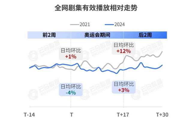 2024恰逢夏季奥运年,全民对奥运的关注显然会对剧集市场有一定的影响,但从折线图来看,4%左右的下滑相对可控(数据来源:云合数据)。