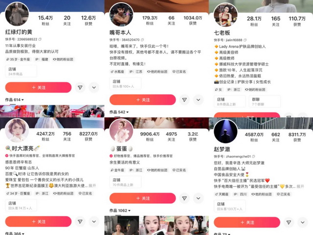 快手(图源:抖音@小杨甄选 快手@辛有志 辛巴 818)
