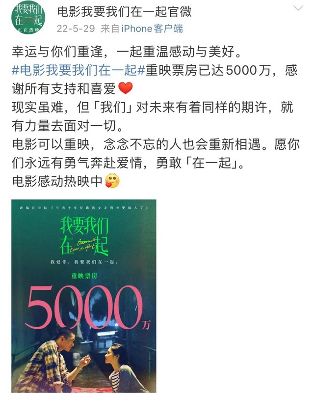 (图源:微博@电影我要我们在一起官微)