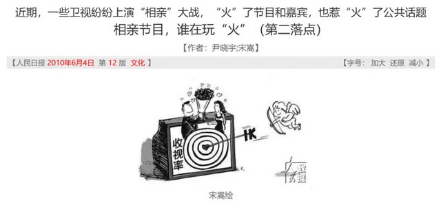 乱象背后呈现出来的问题,可以看出情感类节目对于现实层面的把控缺失一定的思考能力。2010年,《人民日报》刊登《相亲节目,谁在玩“火”》等多篇文章,对这一时期节目的出位表演等情况进行了批评。国家广电总局也连发两则通知,要求规范和管理相亲节目。