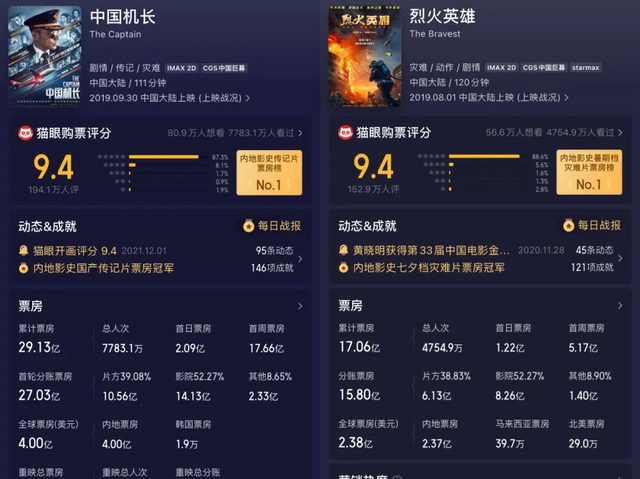 与主旋律合流的灾难片自然会受到近些年来主旋律电影票房水位下降的影响。