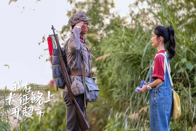 《我在长征路上开超市》另一大出圈的关键因素,是对“穿越”这一形式的巧妙使用。使得“穿越”成为了连接历史故事与当代年轻人情感的桥梁。从本质上看,这也是创作者洞察到了年轻人希望以自己的方式帮助长征,为长征贡献一份力量的朴素情感,于是采用了“穿越”的方式来填补年轻人的遗憾。