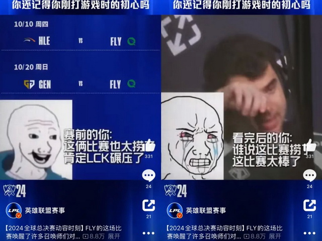 2023年对LPL而言同样并不容易,先是在亚运会半决赛上0-2不敌韩国队,又在世界赛上集体表现不佳,先后输给T1。因此,BLG承载的既是一个赛区“重铸荣光”的愿景,也是大众对于“全华班”的期待。在“抗韩情绪”达到顶峰的此刻,这一场比赛甚至将决定无数玩家和观众的去留。