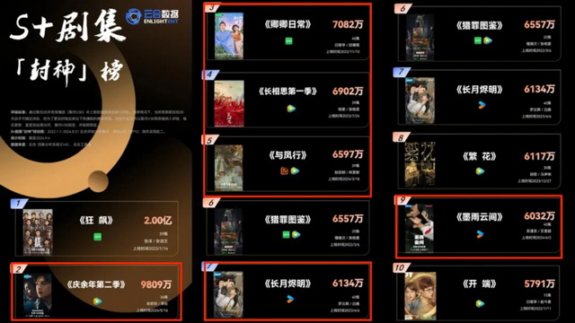 根据云和数据2022-2024年S+剧集复盘,在2022年1月1日到2024年8月31日上新的云合评级S+剧集当中,前十的剧集里有六部古装,除了《庆余年第二季》之外,《长相思 第一季》《与凤行》等五部作品都属于观众比较公认的“古偶”范畴,足见影响力。