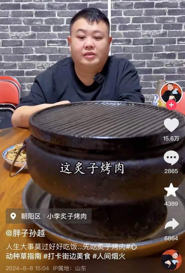 洪剑涛、孙越这两位地道的“老北京”都是因为推荐北京美食爆火。孙越在今年8月份在抖音探店“小李炙子烤肉”,在视频中详细介绍老北京炙子烤肉的吃法以及特点,视频一经发布,店家生意爆火,老板甚至“吐槽”孙越,因为这支探店视频,自己都忙累倒了。
