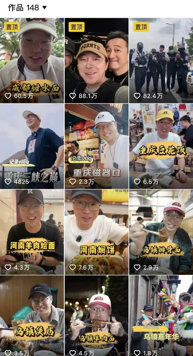 王迅也是在去年下半年开启了自己的“探店之旅”,回到成都探店甜水面的视频收获60余万点赞。和洪剑涛一样,王迅现在也是趁着工作之余,打卡全国各地美食,包括淮南牛肉汤、河南牛肉烩面、内蒙涮羊肉、乌镇排骨面等,也保持着每周2-3条视频的更新频率。