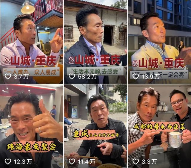 老一辈港星的脚步则更加广阔,足迹遍布祖国大江南北。郑浩南、吕良伟都是个中代表,在拍戏间隙在全国各地探访美食,郑浩南偏爱川渝美食;吕良伟则来到成都、武汉,打卡宜宾桂花湾老院子,以及品尝成都抄手。