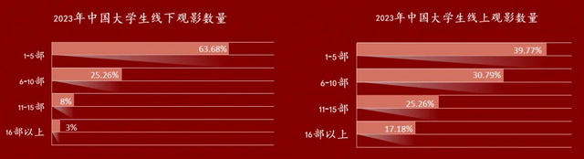 在观影频次上,大学生平均三个月观看一次院线电影,线上观影则平均一月一部。相比之下,大盘整体数据中,观众年均观影频次仅仅刚过两次。大学生对电影文化的热情可见一斑。