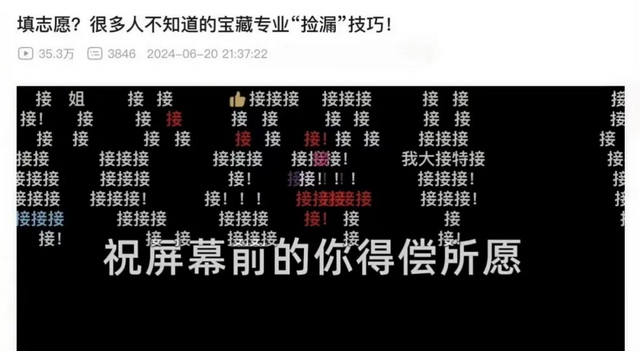 在B站所陈列的对“接”的使用场景中,考试上岸、入职升职、表白成功、欧气爆棚,甚至是看到美好故事时,用户都会纷纷发出“接”字弹幕。不难发现,这里“接”的都是他人身上发生的好事,是相对具体的事情。