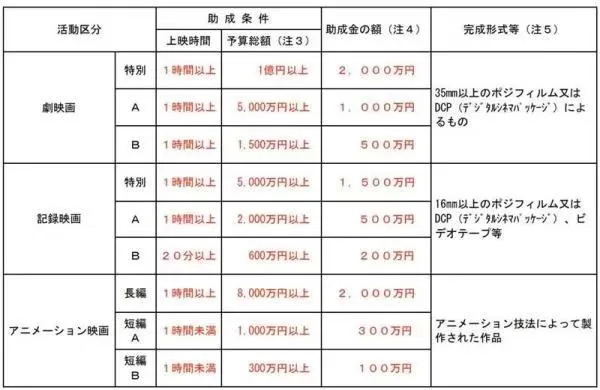 影视制作补助金金额标准(图源:日本独立行政法人艺术文化振兴基金官网)