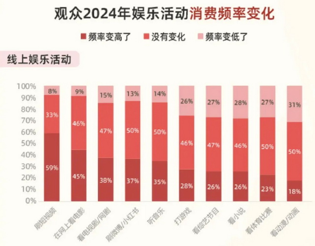 毋庸置疑,影像不会消亡,人类对故事的需求不会消失。根据调研,刷短视频、在网上看电影、看电视剧/网剧,是今年线上娱乐活动频率最高的前三名。不过,在文娱消费形式、渠道与场景的变化下,流媒体、短剧以及其他娱乐形式持续分流着影院观影用户是不可忽视的现实。
