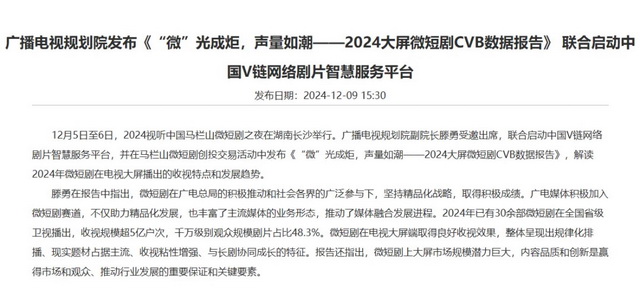 8月1日,国家广播电视总局印发《关于丰富电视大屏内容 进一步满足人民群众文化需求的意见(试行)》,释放了三个信号,一是短剧可以登陆电视台,二是电视台也可以制作短剧,三是短剧不再“登不上台面”,反而会成为台网联动的新桥梁。