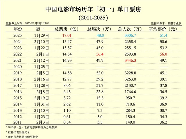 这样的高票房数字,并非如过往一样依赖飞涨的票价来实现。目前大年初一的平均票价为51.4元,比之最高时的2022年大年初一,足有4.6元的差距。总人次由此也实现了历史新高,同比去年增长了30%,可以说是观众用脚投票投出来的一届“最强春节档”。