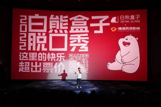 早在2020年,面对疫情冲击,潇影集团就提出“电影+”战略,试图突破影院“单一放映功能”的局限。潇湘青春影城长沙悦方巨幕店成为试验田。2022年,210座的2号厅被改造成脱口秀剧场,灯光与音响升级,长沙本地脱口秀厂牌白熊盒子在此上演脱口秀。