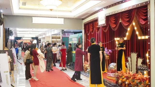 与悦方店同天开业的,还有潇湘青春影城大汉海派店。不同于悦方店的青春现代感,这里充满浓郁的海派风格,一条天然的影厅长廊,被打造成老上海复古场景,夜上海舞台、绿皮火车厢、复古黄包车等众多打卡空间,可以给影迷带来多维度的沉浸式体验。去年,这条影厅长廊变成T台,上演了一场旗袍秀,开启了潇湘影城与湖南旗袍文化协会的合作。