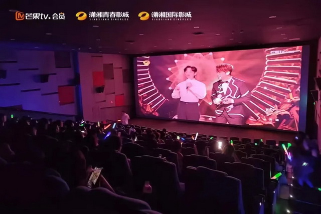 除了活动的多样化,潇湘影城也在积极拓展影院放映内容的多样化。从NBA总决赛、王者荣耀世界冠军赛,到去年的巴黎奥运会,潇湘影城一直在积极将体育赛事、电子竞技赛事引入影院,甚至与芒果TV跨界合作,打造《歌手2024》影院巨幕实时直播,“影厅还会发放荧光棒等应援装备,就像听一场小型演唱会”,不少观众就喜欢影院里的沉浸感,感觉值回票价。