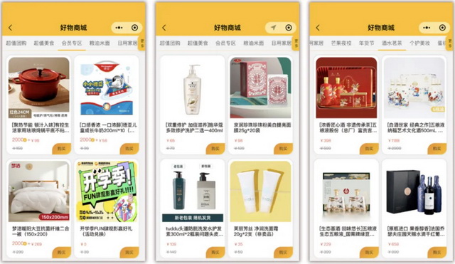 在小程序里,用户不光可以在线选座、线上点餐,还可以逛商城。目前,商品池近1600个SKU,全面覆盖了粮油米面、日用家居、影视周边、休闲零食、家用电器、个护美妆等多个版块,产品应有尽有。同样,潇湘影城的电影卡,既能看电影、买卖品,又能消费这1600个商品,极大地拓展了传统电影卡的服务范畴。如此一来,电影卡的议价能力也提高了,有助于增加团体收入。
