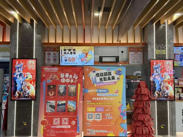 电影院自身,更是绞尽脑汁地花样整活,湖南潇湘影城配合上映新片,整出“魔焰三昧甜酒”“唐人谜案真相大香肠”“西岐烽火臭豆腐”等主题卖品,还策划“春节档最佳影片投票活动”,以公益场的形式,免费请特殊群体看票选的最佳影片。