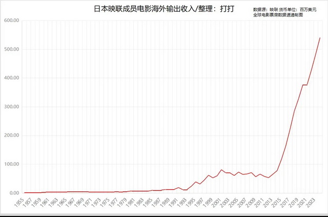墙内开花墙外香。日本电影的海外成绩首次突破5亿美元,已实现超过十年的稳健成长。以日本映画制作者联盟成员松竹、东宝、东映和角川为准,2024年日本电影的对外输出成绩达到5.4亿美元(约合850亿日元),比前年同比提高11.8%,更相当于2014年的逾6.9倍。这一数据包括电影和电视电影的海外发行权、海外放映权、翻拍权、海外播放权、海外二次使用权和影视角色商品化权等。