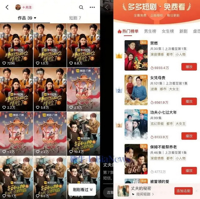 今年,以红果短剧、抖音、快手、爱奇艺、芒果TV、腾讯视频、央视频为代表的长短视频平台,小红书、百度、淘宝、美团、拼多多为代表的互联网平台纷纷下场,参与短剧春节档混战。