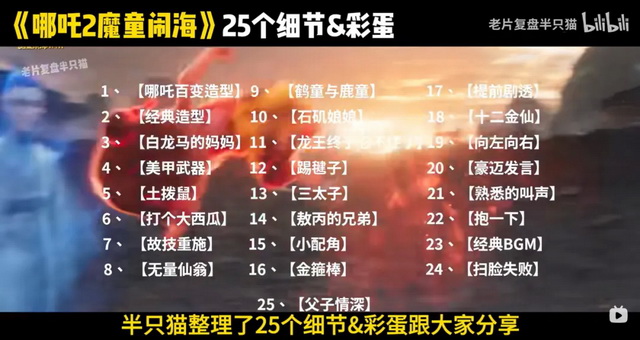在《哪吒2》口碑票房狂奔之路上,多元的深度解读助力其不断破圈,成为全民爆款。B站UP主老片复盘半只猫在大年初二盘点了《哪吒2》25个细节彩蛋,收获了758万播放量,多元观点激荡出观众的讨论兴趣,多个彩蛋热搜也登上了各社交媒体网站。