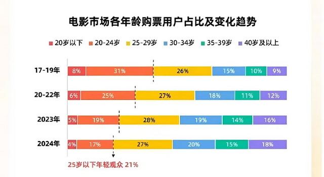 而这恰恰是当下电影行业最渴求的一点——拉动年轻人回归电影。目前电影的年轻观众占比正在大幅下滑,据灯塔数据,25岁以下年轻观众已经下降到了21%。作为年轻人的集聚地,B站的声音对内容制作、营销传播方而言更有价值。