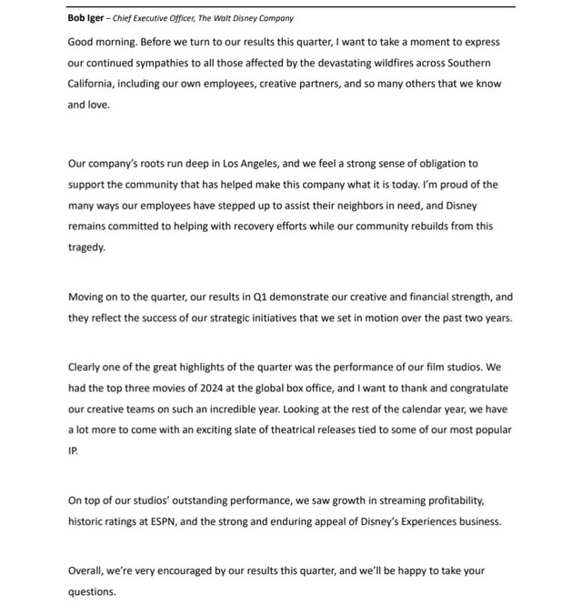 针对本季度,迪士尼预计Disney+订阅用户数量环比略有下降,体育部门则因大学体育赛事和退出Venu Sports等变化,预计对运营利润的不利影响分别为1亿和5千万美元,同时迪士尼邮轮开业前费用约为4千万美元。