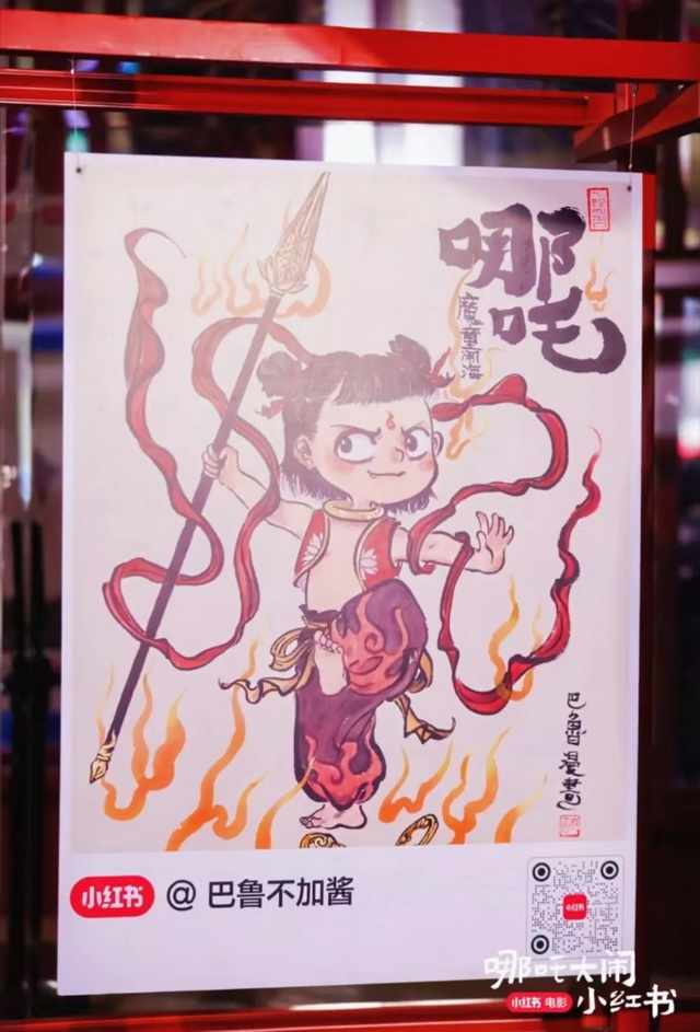 尤其是围绕《哪吒之魔童闹海》,用户的创作热情之高,甚至让小红书专门为优秀的二创作品办了一场展览。通过#哪吒240h接力产粮的话题,小红书号召哪吒IP的爱好者们以各种形式参与二创接力,截至2月12日,收获了超365万的讨论与超10亿浏览量。紧接着,小红书迅速在线下为所有哪吒的二创作者办了“哪吒大闹小红书”新春特别展览,应援国漫崛起的同时,让为爱发电的创作者也感到了一丝回馈的温暖。