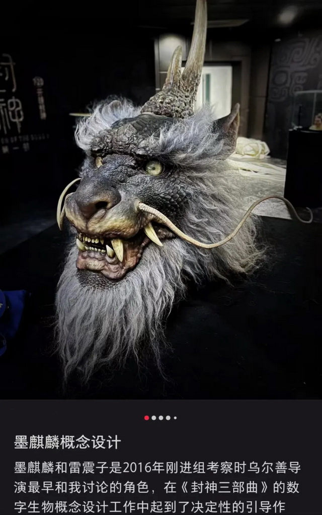 而用户@四姐大人则作为雕像艺术工作者参与到了《封神第二部》的角色设计中。片中雷震子、墨麒麟、花狐貂等奇幻人物与动物,在概念设计阶段均是先有实体雕塑形象,再形成数字资产的。而在她的笔记分享中,关于每一种上古异兽的设计与想象,都交代了现实灵感来源,也让观众能更清晰地了解到创作者的审美意图。