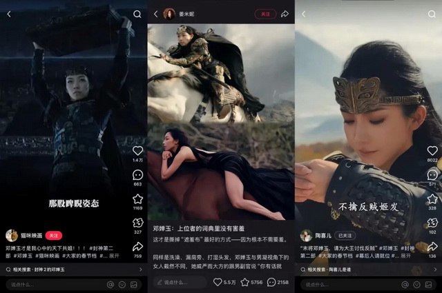 比如《封神第二部》中被小红书用户被封为“天下共姐”的邓婵玉,可谓是今年春节档最出圈的女性角色。小红书第一时间出现了大量关于邓婵玉以及演员那尔那茜的差异化内容,如邓婵玉仿妆、剧情细节分析、原著角色科普等等。