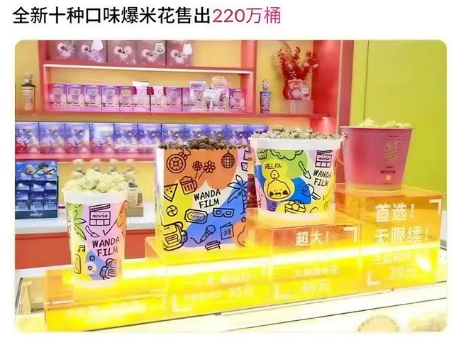 今年春节档,万达电影在自营饮品“桃桃西打”和“莓莓西打”之外,推出的10种口味的爆米花同样收获了消费者的欢迎。据《第二春运现场:万达电影2025春节档报告》显示,春节期间累计售出220万桶爆米花。