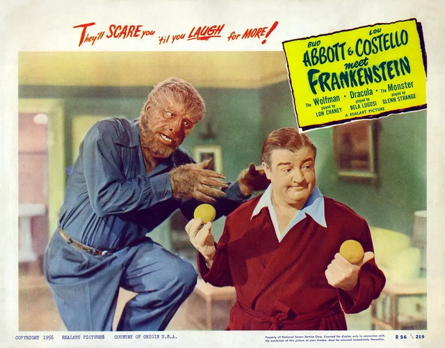 1948年,《两傻大战科学怪人》被认为是“恐怖+喜剧”类型融合的鼻祖。影片通过一对白痴组合与环球影业打造的一系列经典怪物之间的互动来制造幽默效果,诸如德古拉、科学怪人等怪物轮番上阵,又被戏称为“环球怪物大乱斗”。