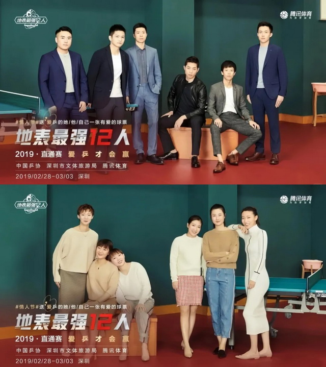 国乒队的运动员开始频繁登陆热门综艺节目,刘国梁和马龙录制《天天向上》、张继科上了《快乐大本营》,单曲《乒乒乓乓天下无双》在B站的播放量超过百万,国乒还拍过一首车企广告MV,戴着墨镜的刘国梁在最后闪亮登场。同时,中国乒协和腾讯体育联合推出“地表最强12人”,开幕式预售的1000张门票72秒内便被粉丝抢光。