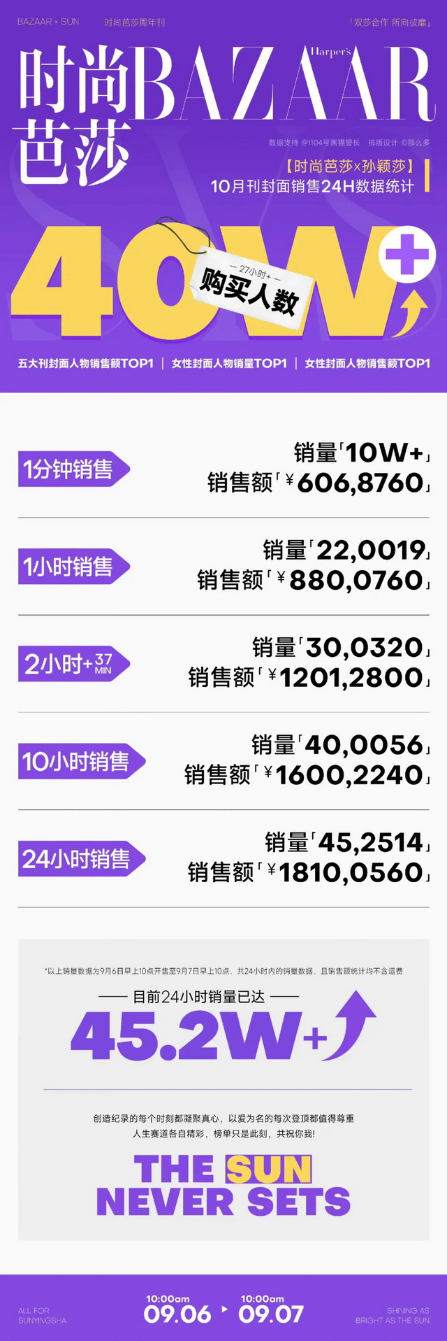 当整个国乒的号召力已然起势之后,奥运周期的更迭与运动员职业周期的变化便不会再带来太大影响。顶流从张继科、马龙丝滑转变为孙颖莎和王楚钦。2024年9月,孙颖莎拍摄封面的《时尚芭莎》十月刊上线开售,一分钟卖出10万份,三小时突破30万份,并快速达成50万份成就,打破迪丽热巴此前保持的最高纪录。50 万本的销售量,配套的是 42 万的付款人数,平均每个人买了1.2本,这是很多艺人粉丝可望不可及的健康数据。