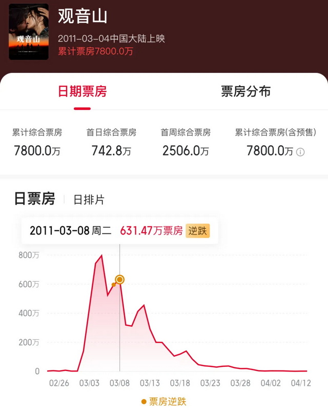 直到2011年,《观音山》选择在3月4日周五上映,3月8日是一个周二还实现了逆跌。影片通过“叛逆青春”的宣传定位,吸引了年轻观众群体,同时借助女性题材和女性角色的突出表现,契合了妇女节的节日氛围,最终以7800万票房让大家看到了这个淡季的市场空间。