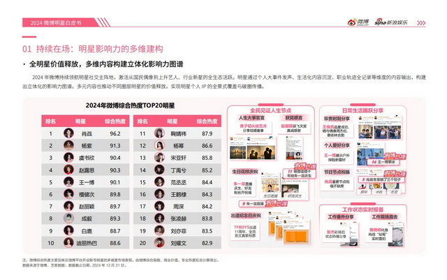 每年一度的《微博娱乐白皮书》都在为行业勾勒过去一年清晰的产业图谱,而微博在文娱行业中不仅是宣发核心主阵地,更是推动行业增长的核心引擎,在2024年的《白皮书》中,微博展现出了自己更成熟的一面,对文娱行业生态发展更具引领能力的一面。