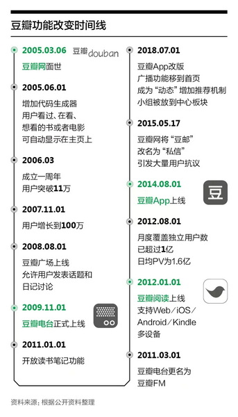 在移动互联网时代到来后,豆瓣的步伐更加激进,将网页上的豆瓣FM、豆瓣阅读、豆瓣电影、豆瓣小组等独立功能,全部拆分成了单独的垂直类App,最多时,甚至有13个产品在应用商店里并存。