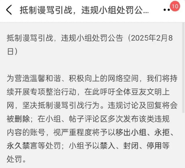 豆瓣自身也多次成为官方整治“网络乱象”的具体指向,甚至一度下架,督导组亲自下场督促整改。