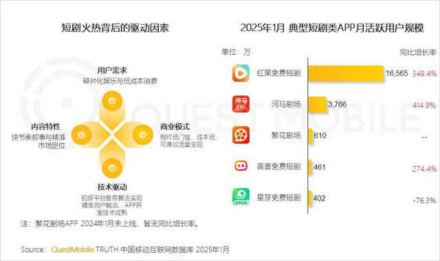 首先,长视频平台面临的最大难题就是“用户心智”。主打免费短剧的红果短剧上线两年不到,已经成为竖屏短剧头部平台,如今月活更是突破1.6亿,成为不少用户提起短剧的首选平台。