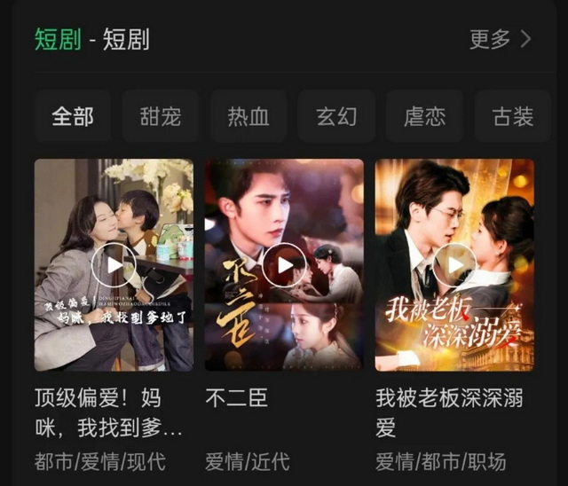 与此同时,微信“发现”页还新增“短剧”入口,同时设立“剧场”频道热门榜以及“推荐”频道的精品内容推送,用户在此不仅可以观看第三方平台的短剧,更像是腾讯自建宣发体系,实现从内容到消费、宣发的上下游一体联动大发展。