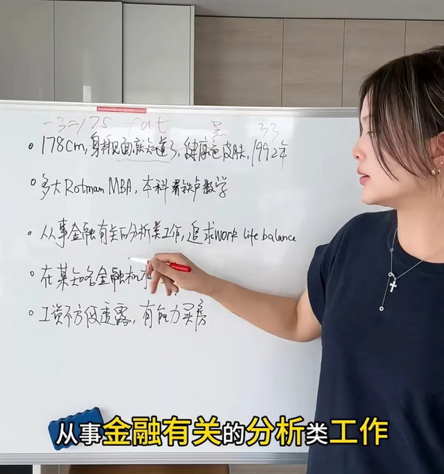 “这个温哥华金融男能嫁吗?”“这个西雅图程序员能嫁吗?”……她在一块白板前,化身相亲分析师,对某相亲男的身高、体重、年龄、学历、家庭情况、工作情况等个人介绍,一条条抽丝剥茧,拿着记号笔圈圈画画,将婚恋市场的隐性规则转化为可量化的段子。