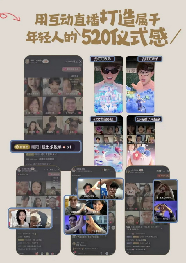 虽然是E人天堂,但这里也对I人友好。除了才艺整活,直播间里也不乏坦诚的情感交流,有人来情感咨询,如何处理异国恋;有人鼓起勇气直球表白,又害羞得一言不发,求助活老师支招;有人在直播间的相知相识中坠入爱河,牵手成功。